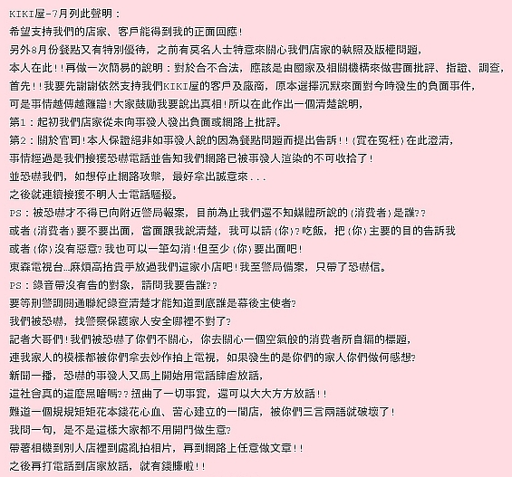 KiKi屋的無名聲明稿